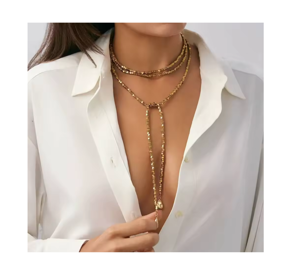 Amaranta es la elegancia personificada. Con su cadena larga y versatilidad de uso, esta pieza es perfecta para complementar cualquier look. Un accesorio imprescindible para darle un toque de sofisticación a tu estilo. ¡Dispón de varias formas de llevarla y destaca con un 100% de elegancia!