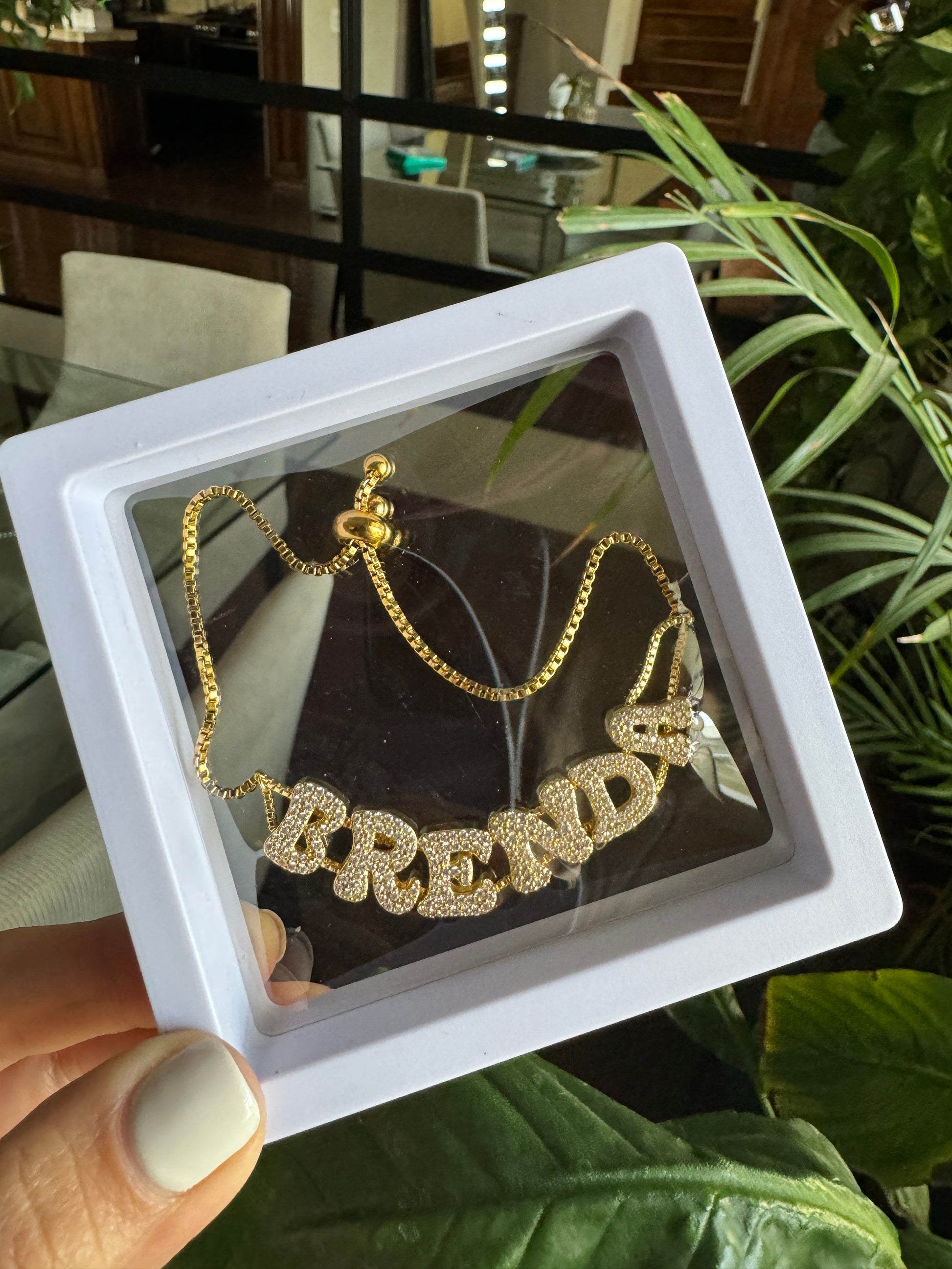 Pulsera personalizada de acero inoxidable y baño en oro de 18 k , el máximo es de 8 letras